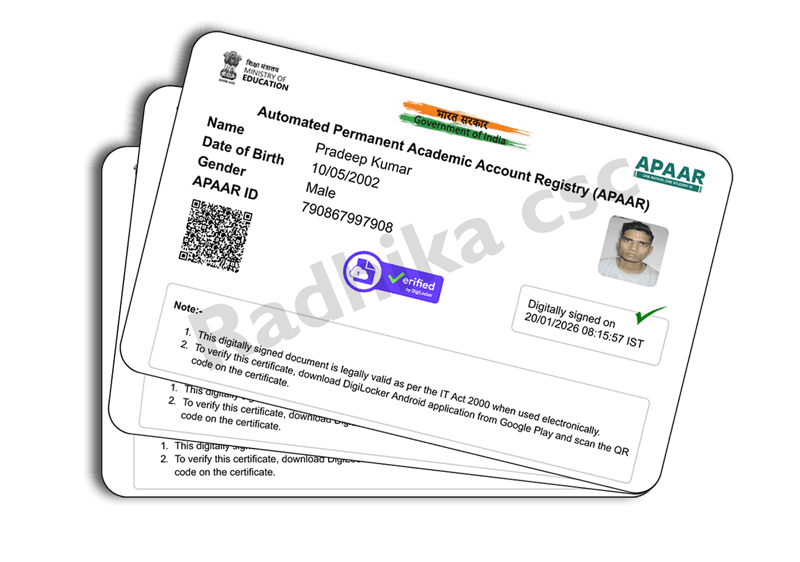 The Apaar ID Card is a premium-quality printed plastic card made using your original downloaded APAAR ID card PDF. This card is designed for durability, clarity, and convenient daily use.