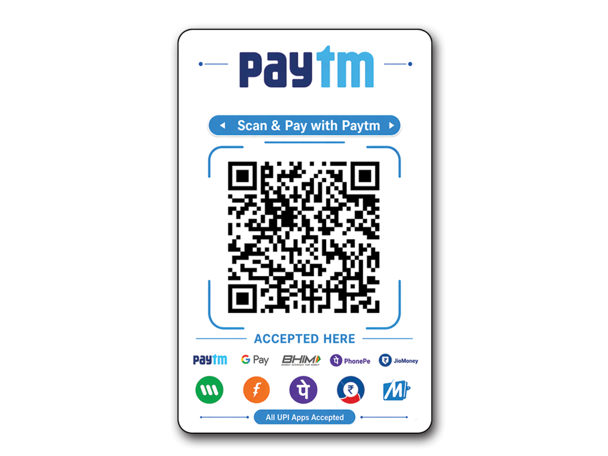 The Paytm PVC QR Code is a premium-quality printed plastic card, created using the Paytm QR code shared in your original order. This card is designed for durability, clarity, and ease of daily use.