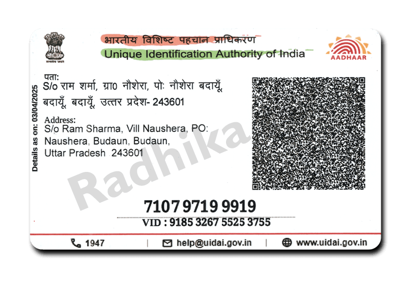 This product is only for PVC card printing and physical delivery. We do not apply, download, modify, update, generate, or process any Aadhaar card records or government services.